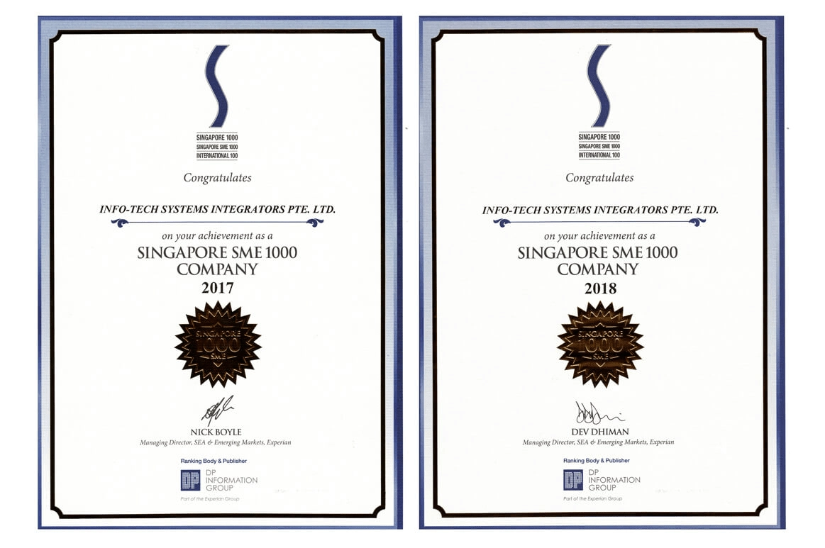 Info-Tech received SME 1000 Award in Singapore Emerging SME 1000, year 2017 & 2018.