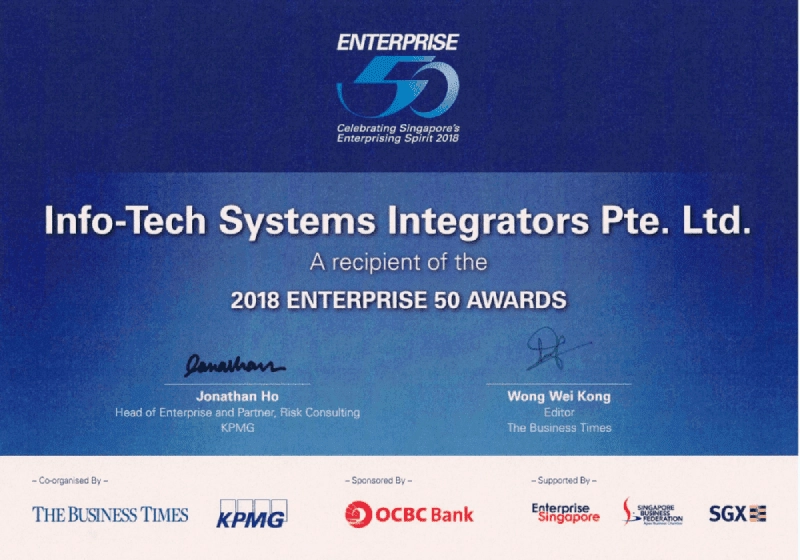 Info-Tech received Prestigious Enterprise 50 Award in Singapore 2018 Enterprise 50 Awards.
