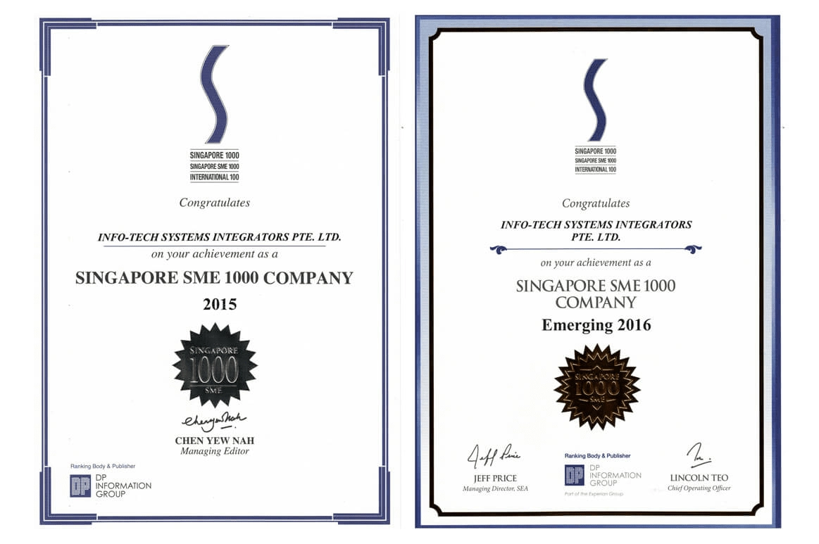 Info-Tech received SME 1000 Award in Singapore Emerging SME 1000, year 2015 & 2016.