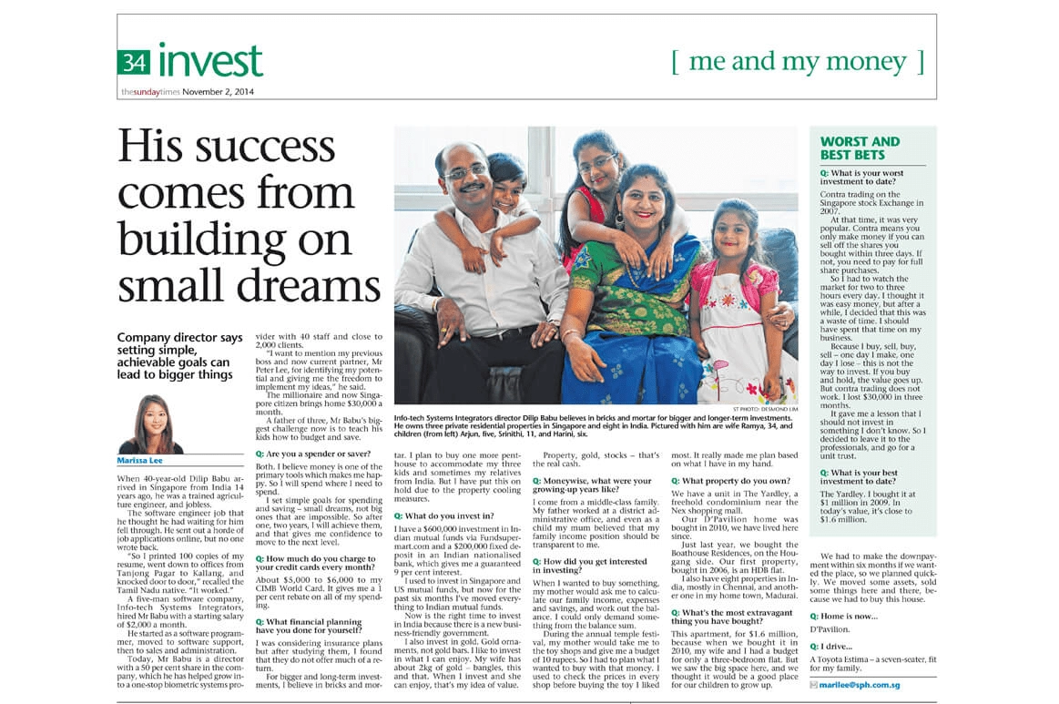 Info-Tech and its CEO, Dilip Babu was featured in Sunday Times Invest Section in 2014.