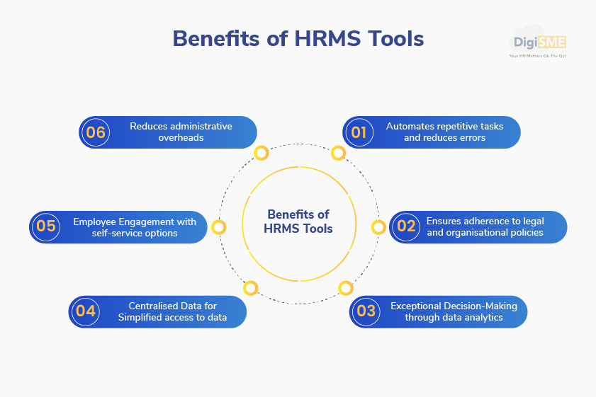 HRMS tools are software applications to manage human resources efficiently. Various HR functions like recruitment, onboarding, training, payroll, and compliance are integrated into a centralised platform. Businesses can effortlessly handle employee-related tasks while maintaining records and smooth communication across departments.